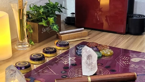 Harmonização energética com cromoterapia, reiki e mesa radiônica para restaurar seu equilíbrio.